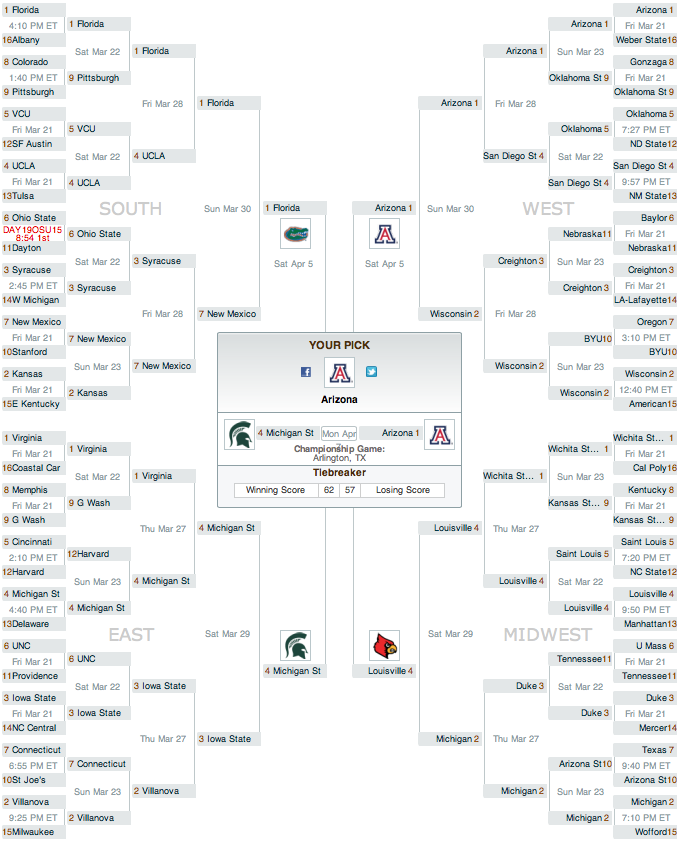 Here it is, ladies and gents: my picks for the 2014 tournament. Who do you have taking it all the way?